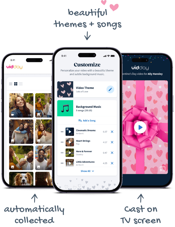 Start a Valentine's Day VideoImagine sitting down with your loved one and watching a montage of all the moments you've shared, from your first date to your recent vacation, all set to a beautiful soundtrack.