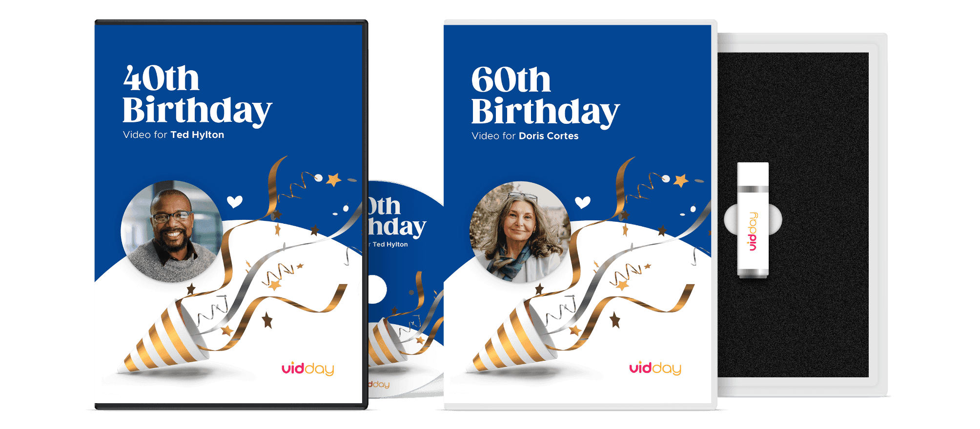 Turn your birthday video into a VideoBook, DVD, USB, or postcard keepsake.