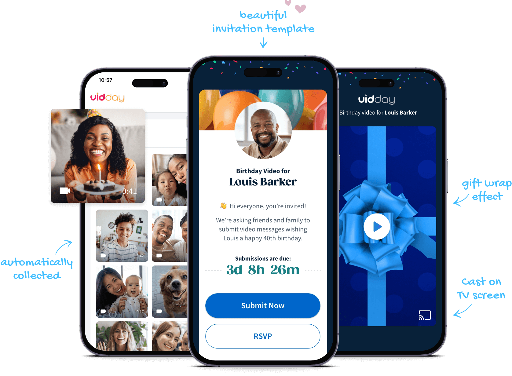You and invitees can effortlessly submit video messages from any device and browser.
