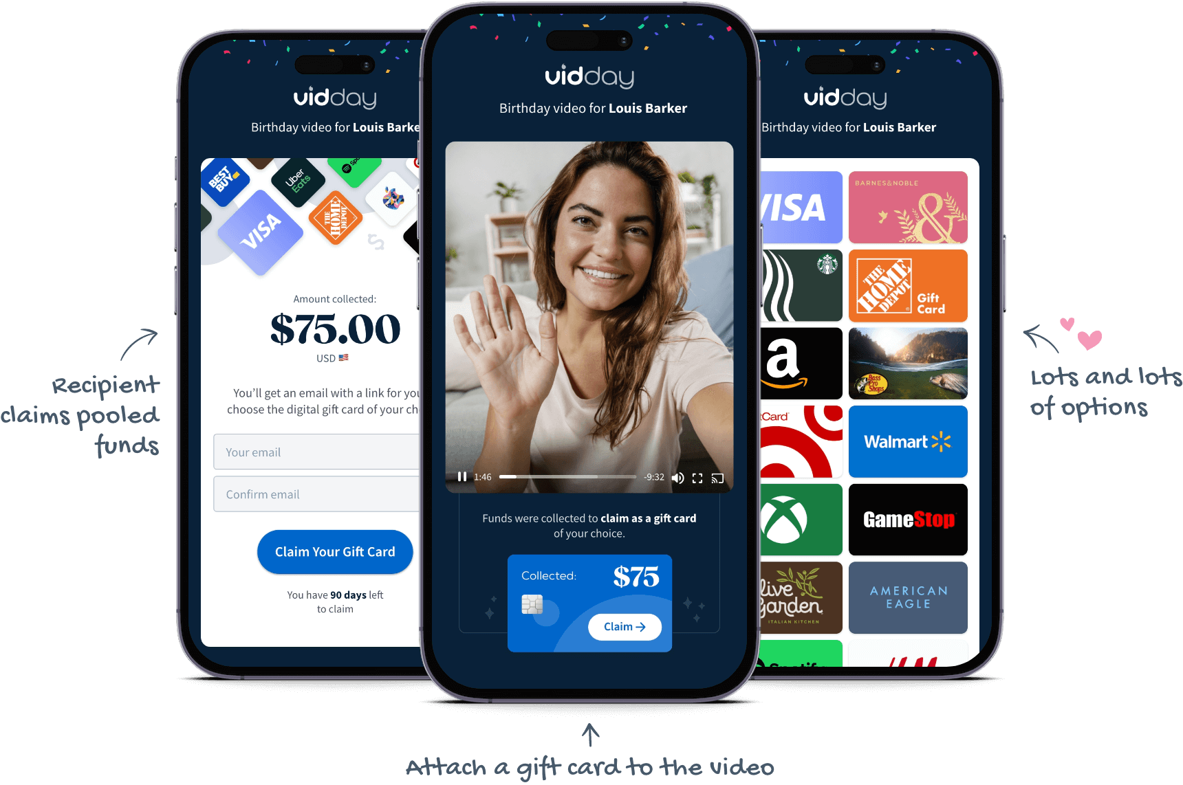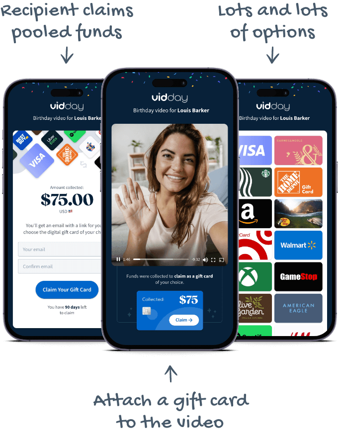 Whether it's a birthday, retirement, graduation, or any other occasion where you want to deliver an abundance of joy beyond a traditional greeting card, you can craft an extraordinary group video card with VidDay and include a group gift.